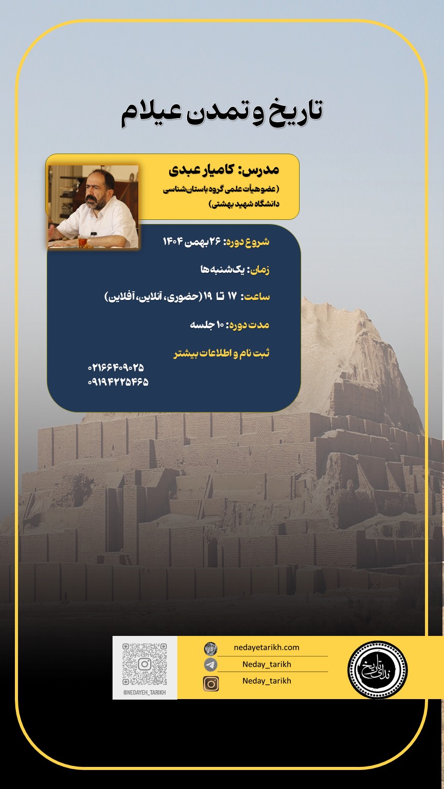 مدرس: دکتر کامیار عبدی(عضو هیأت علمی گروه باستانشناسی دانشگاه شهید بهشتی)