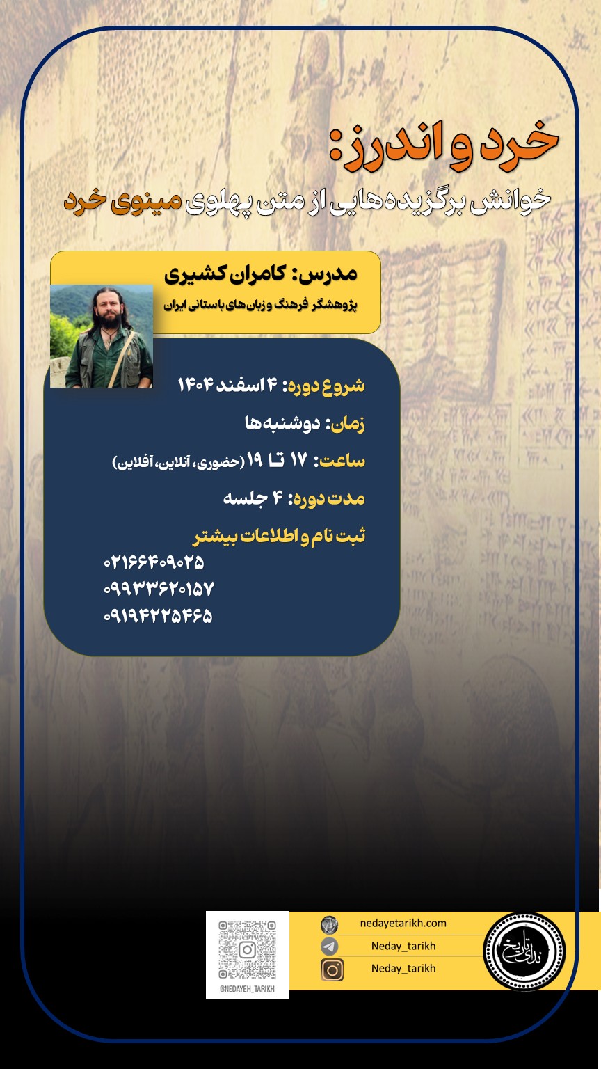 مدرس: کامران کشیری (پژوهشگر فرهنگ و زبانهای باستانی ایران)